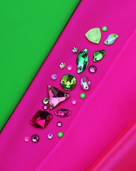 «Малиновая ткань или фуксия с зелеными кристаллами или переливами с зеленым»