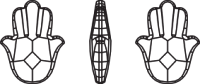 Ювелирные камни Swarovski в форме руки Фатимы. Эти кристаллы используют для создания украшений в технике сутажной вышивки, при работе с полимерной глиной или мастикой Ceralun. Вклеивают в изделия из кожи и дерева, оправляют в серебро и другие металлы. Оплетают бисером и используют для вышивания вместе с нитями, пайетками, бусинами и стразами других разновидностей.
