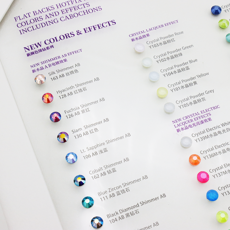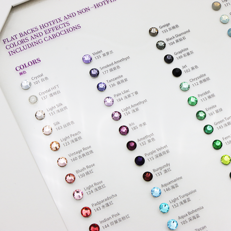 Всё начинается с оттенка. Он способен задать настроение изделию, выделить движение в костюме, акцентировать детали декора. AB-покрытие, прозрачность, плотность окраса, холодные или тёплые полутона — каждый из этих нюансов отражён в живой палитре, где цвета не просто перечислены, а визуально представлены с учётом блика, глубины и типичной огранки. Это не просто иллюстрации, а реальные образцы, позволяющие сравнивать похожие цвета: green и peridot, capri и aquamarine, fuchsia и amethyst. Даже малейшее отличие может сыграть роль, если речь идёт о сцене, съёмке или профессиональной хореографии.