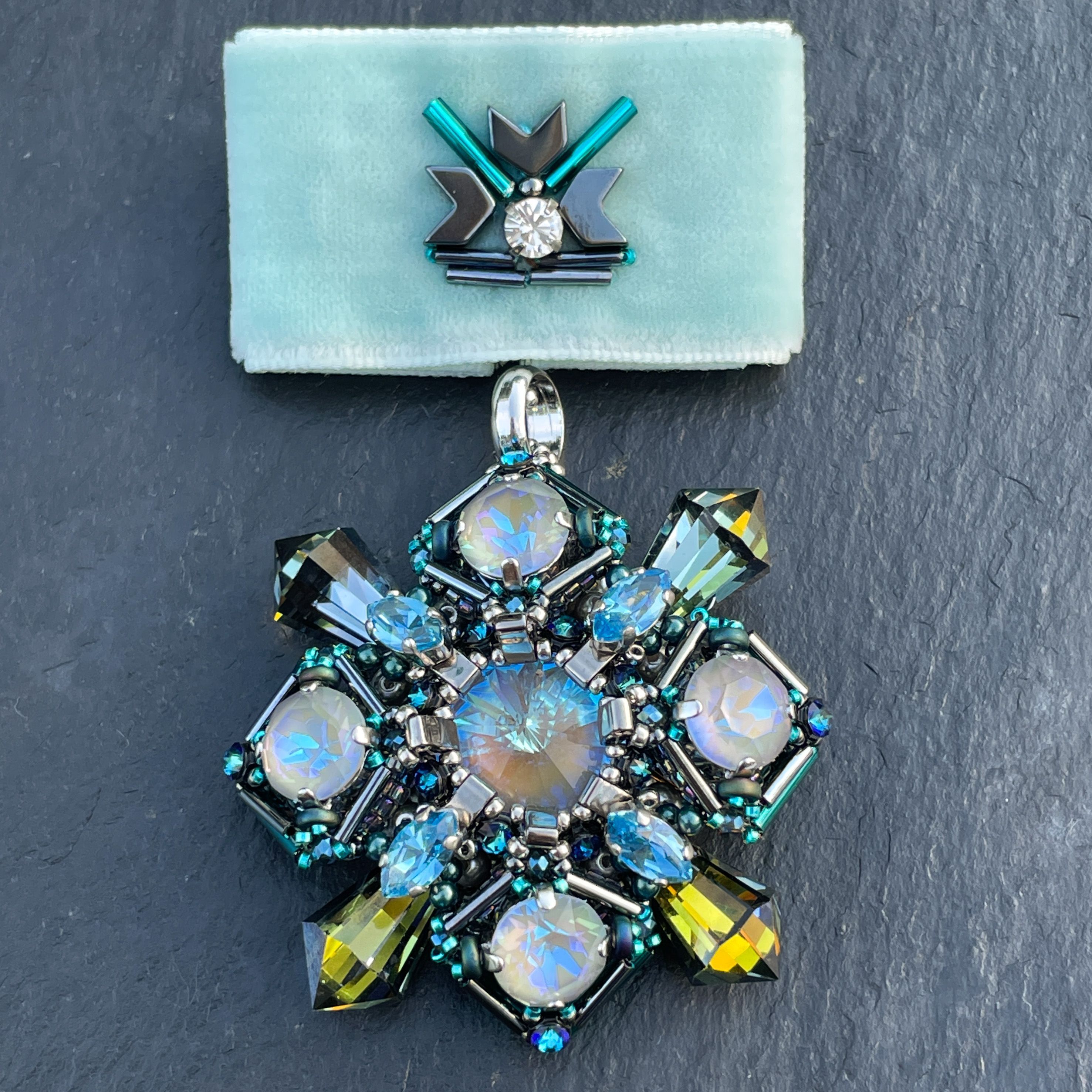 У украшения нет изнанки, - вместо кожи, замши, бархата или фетра задняя часть также усыпана кристаллами! Двусторонний орден - ни что иное, как доказательство любви к непревзойденному свету кристаллов!