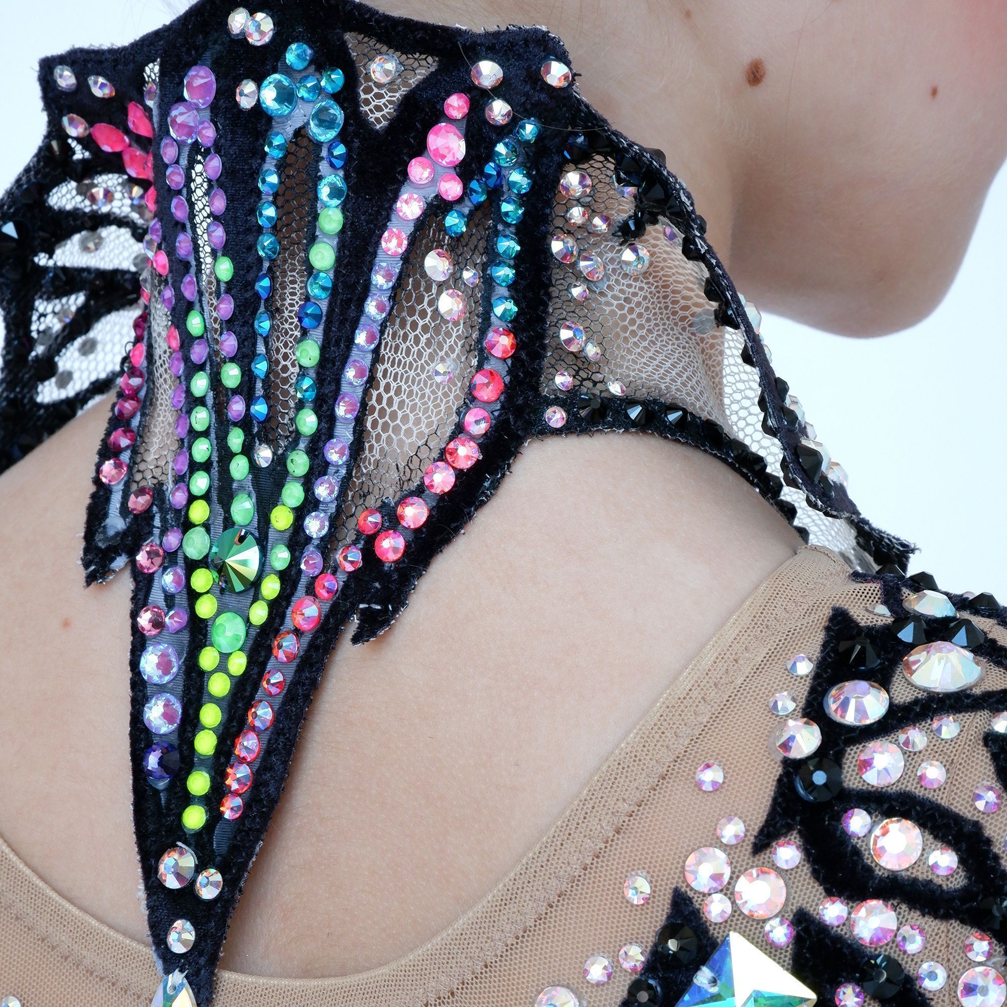Съемный воротник делает купальник удобным для выступления с предметом.