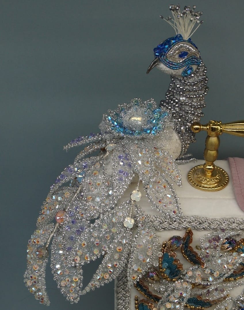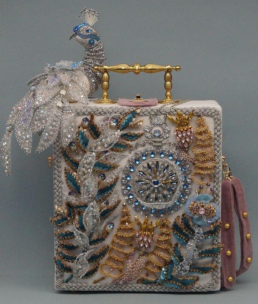 Тема конкурса «Сrystal Love» сразу вдохновила меня. Когда я создаю, то ощущаю себя волшебницей, ведь придуманные образы фантастически материализуюся в жизнь при помощи различных материалов. Блеск кристаллов - особая любовь, их огранка, необыкновенные формы всегда погружают в сказку, создают магию, дают высказать то, что есть в твоей душе, помогают творить искусство. Часы - это образ времени, а павлин – это символ красоты и власти, поэтому основная идея сумочки - власть искусства над временем.