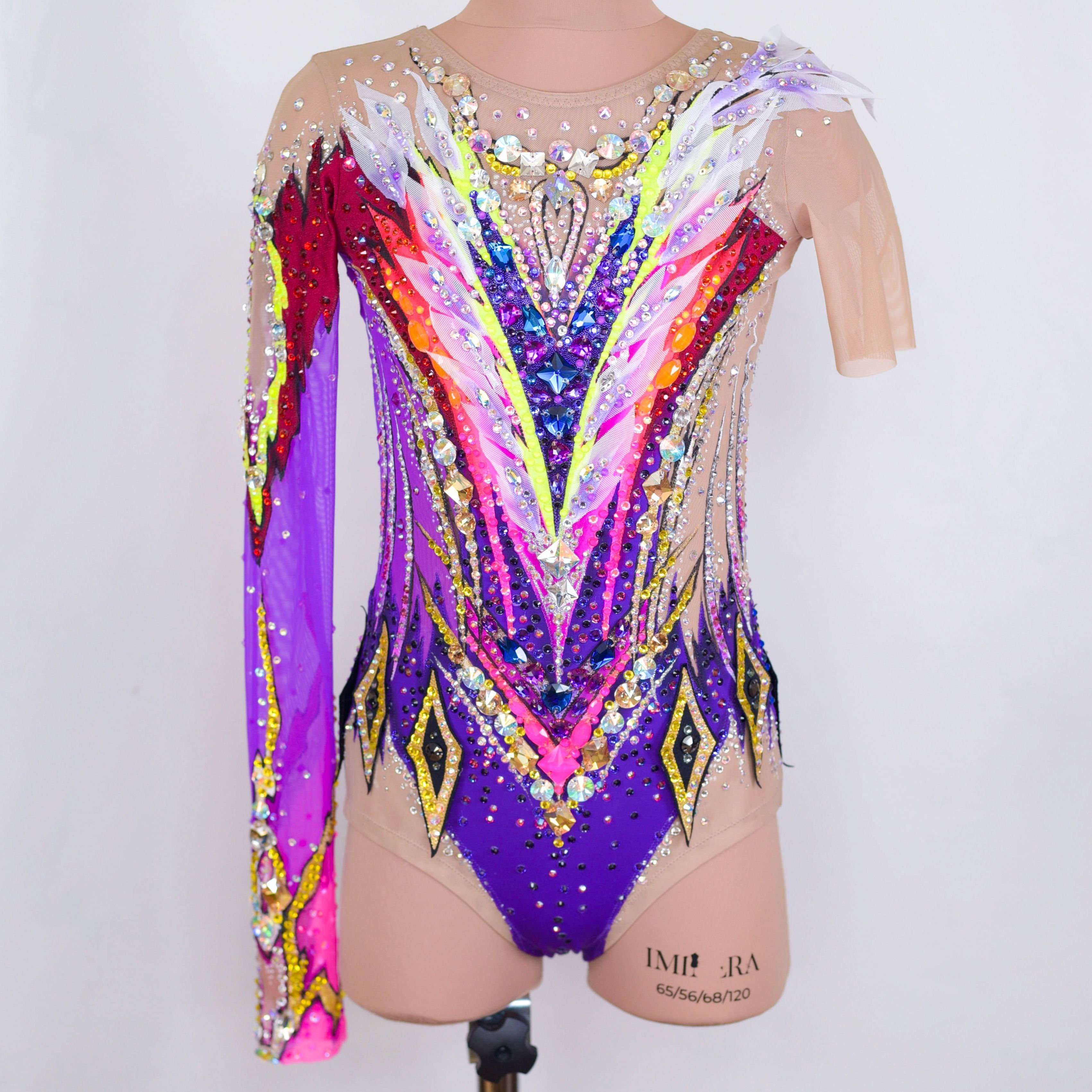 Создавая купальник «Чужестранка» мы взяли за основу фиолетовый цвет - цвет мудрости, трансформации и перевоплощений, а в сочетании с неоновым жёлтым, оранжевым и бордовым он создает противоречивый, вызывающий и яркий образ, который притягивает взгляд и практически заставляет обратить на себя внимание.