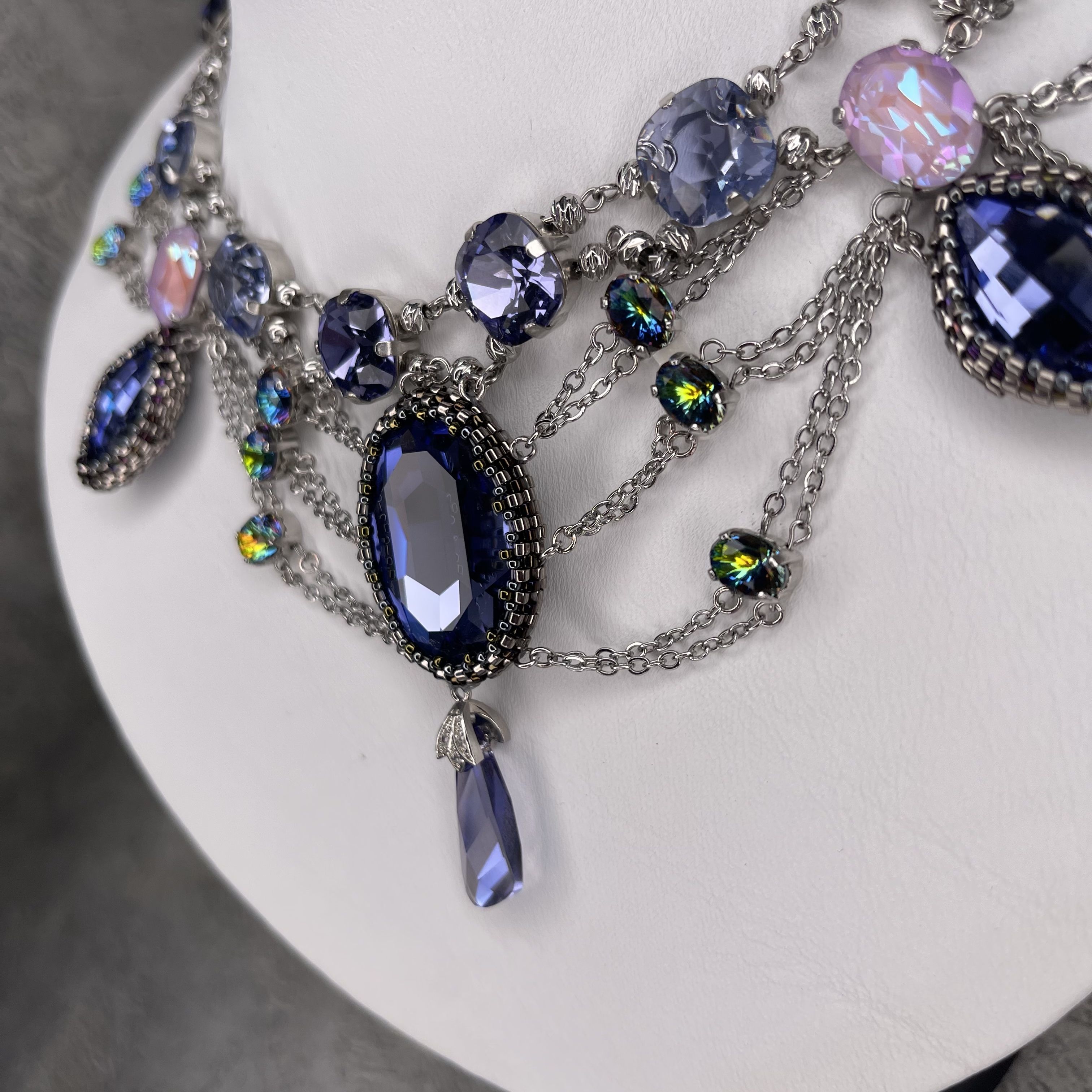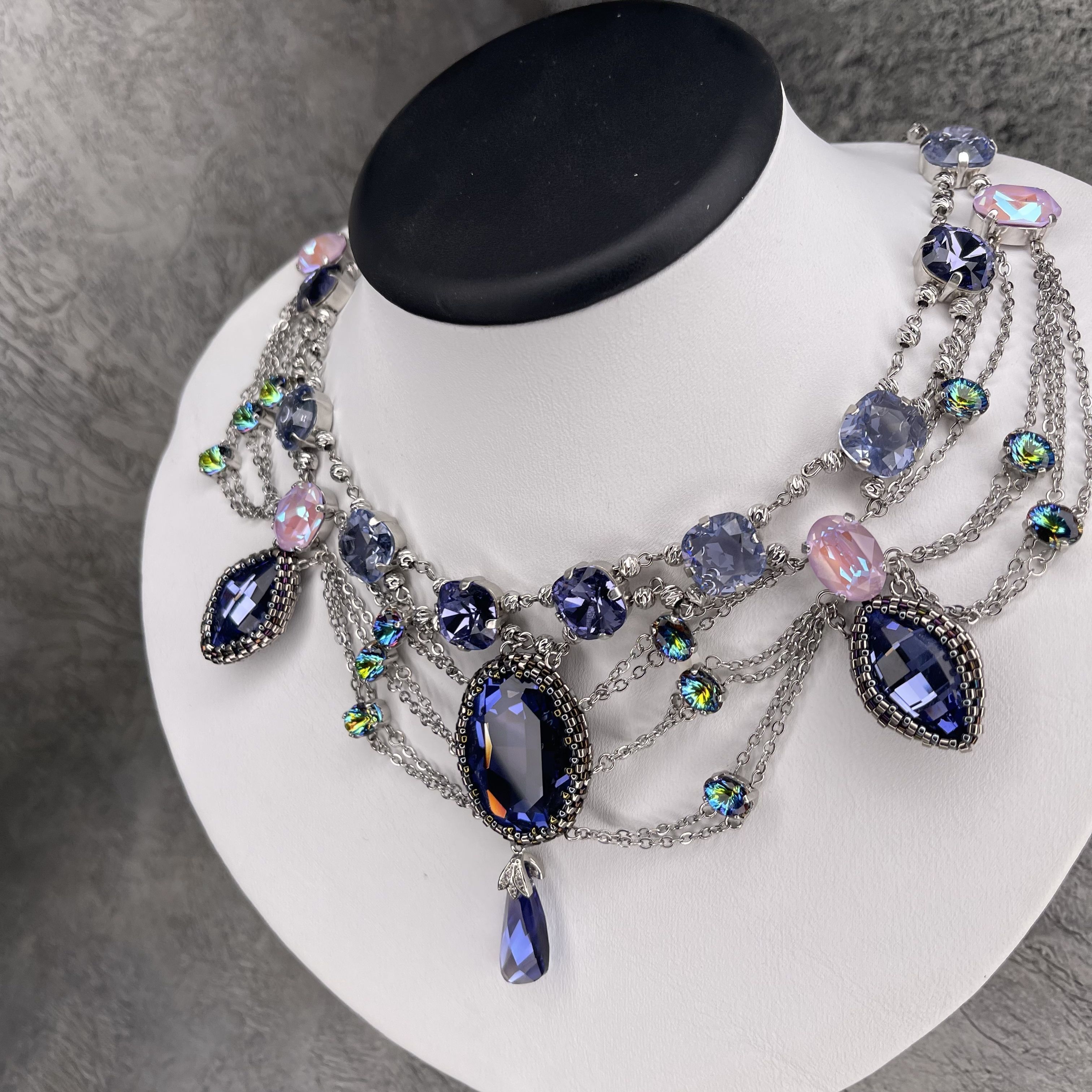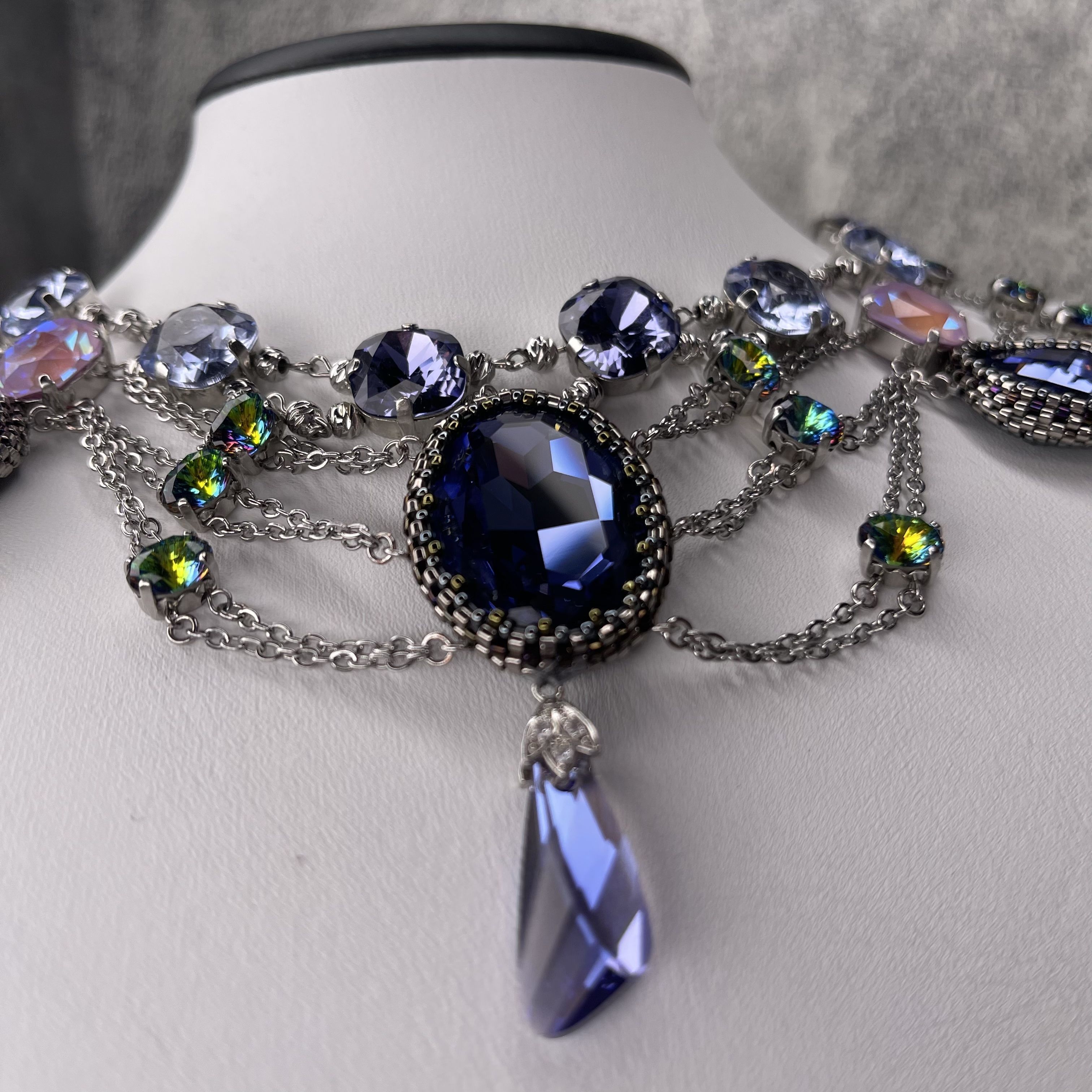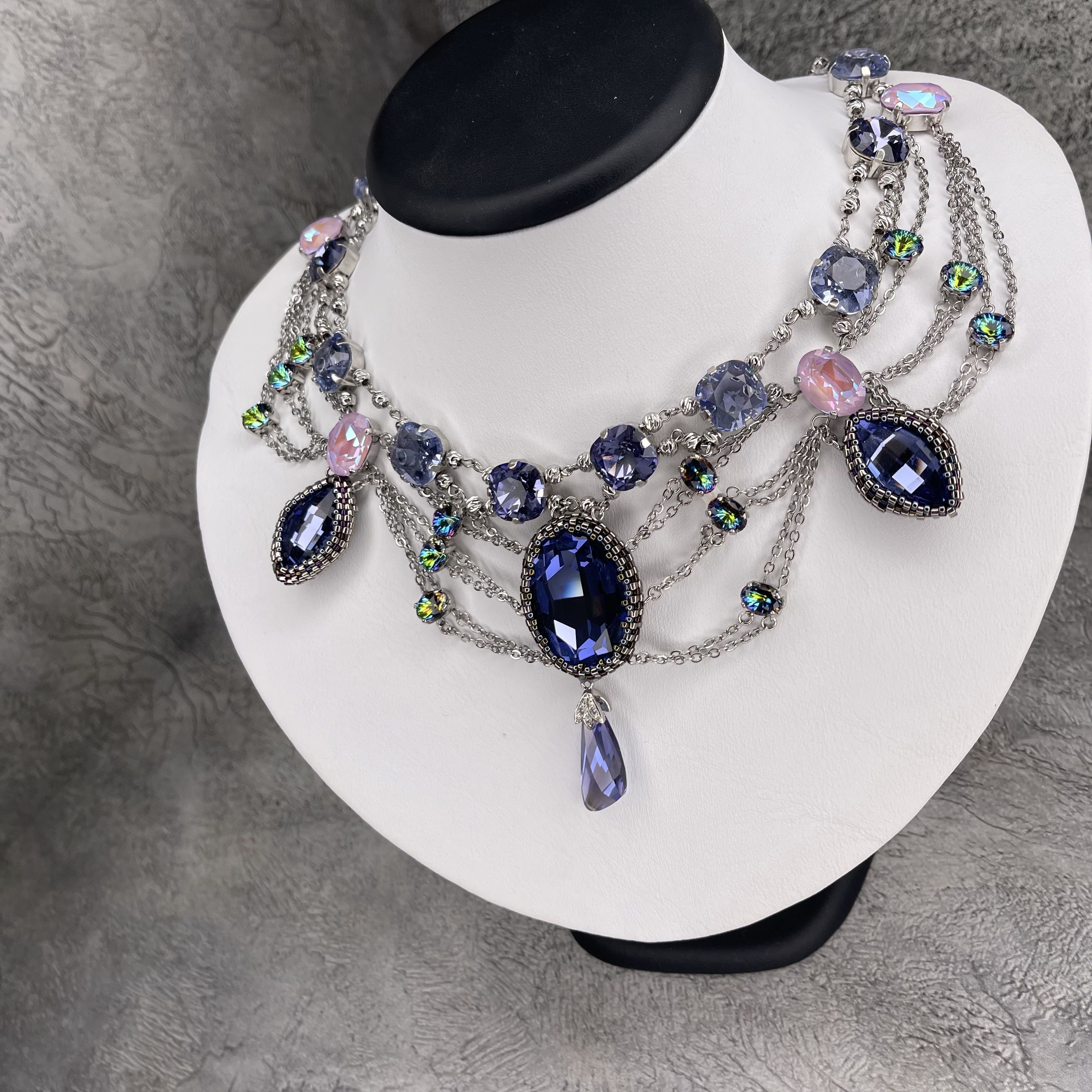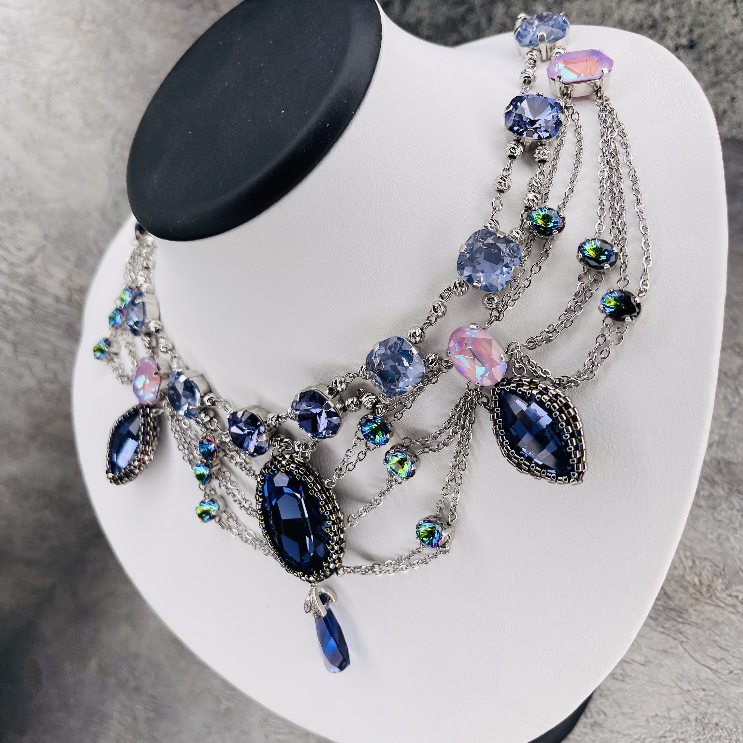 Вселенная - драгоценная шкатулка. А в каждой шкатулке должно быть колье. Различные оттенки страз от Evoli отражают собой безграничные красоты Вселенной. Тёмные оттенки придают колье некую загадочность и таинственность, а светлые оттенки добавляют лёгкости и романтизма. Невесомые цепи, как едва уловимые нити, объединяют разные уголки вселенной, создавая новое созвездие. Новое созвездие во Вселенной Evoli...