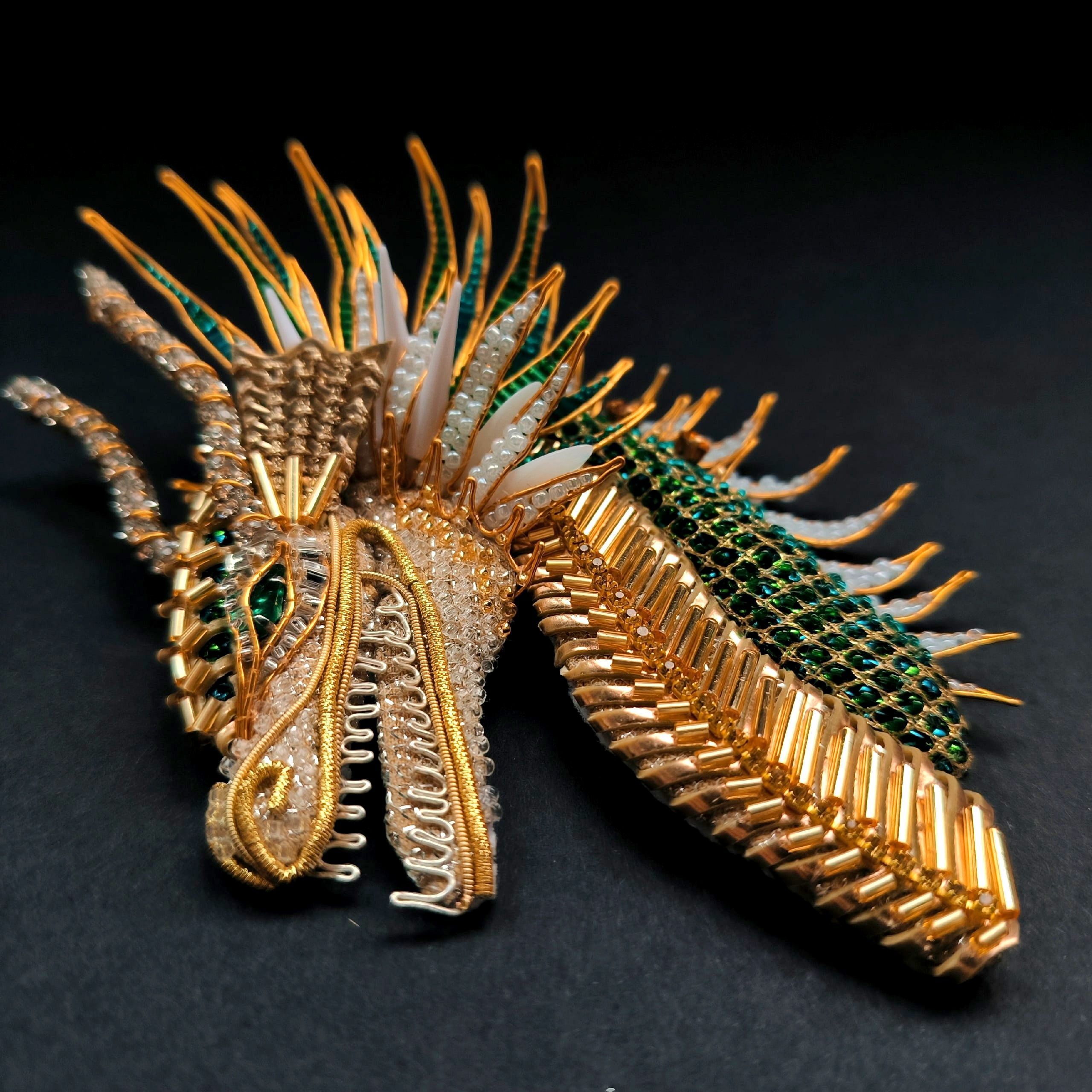 Брошь "Дракон Изумруд"