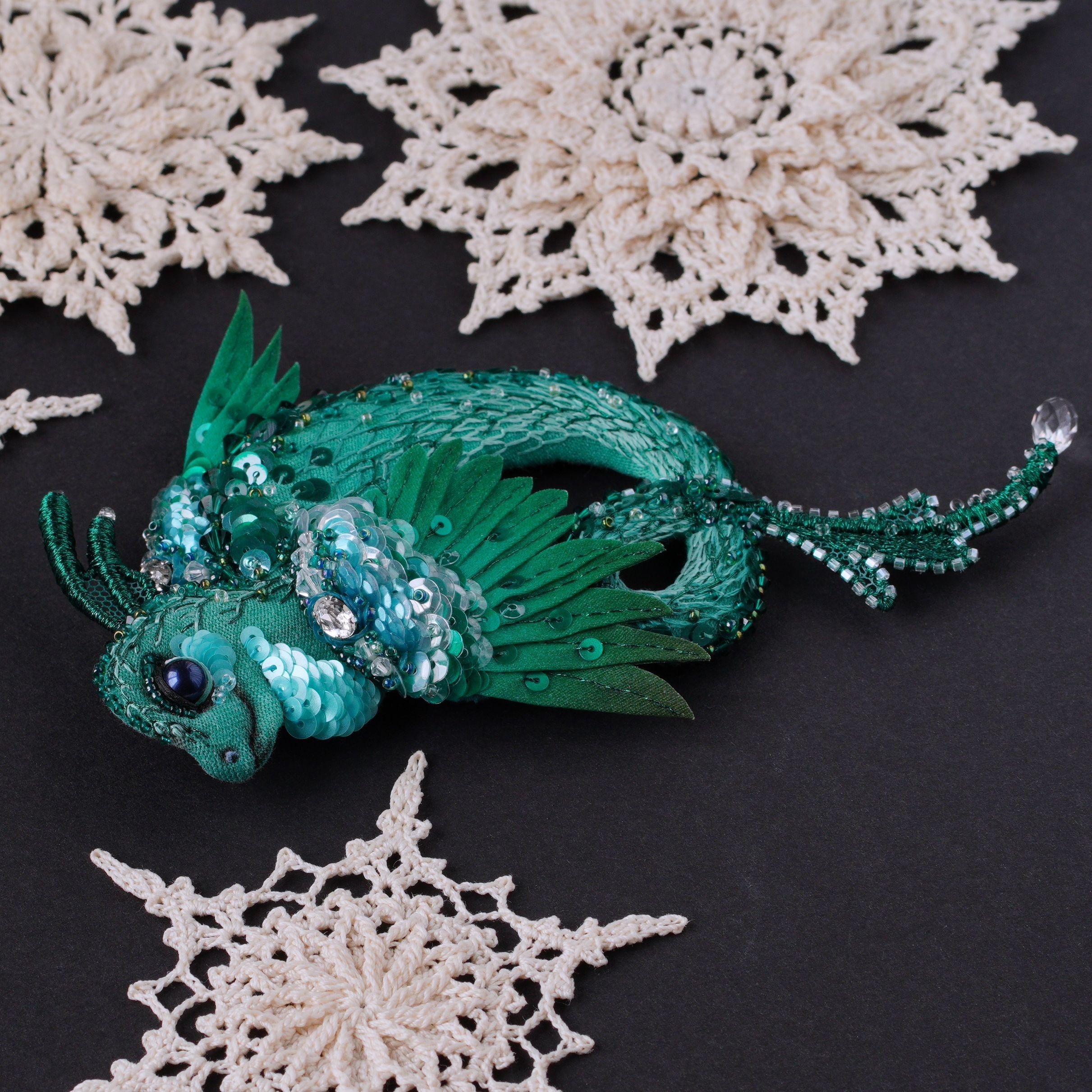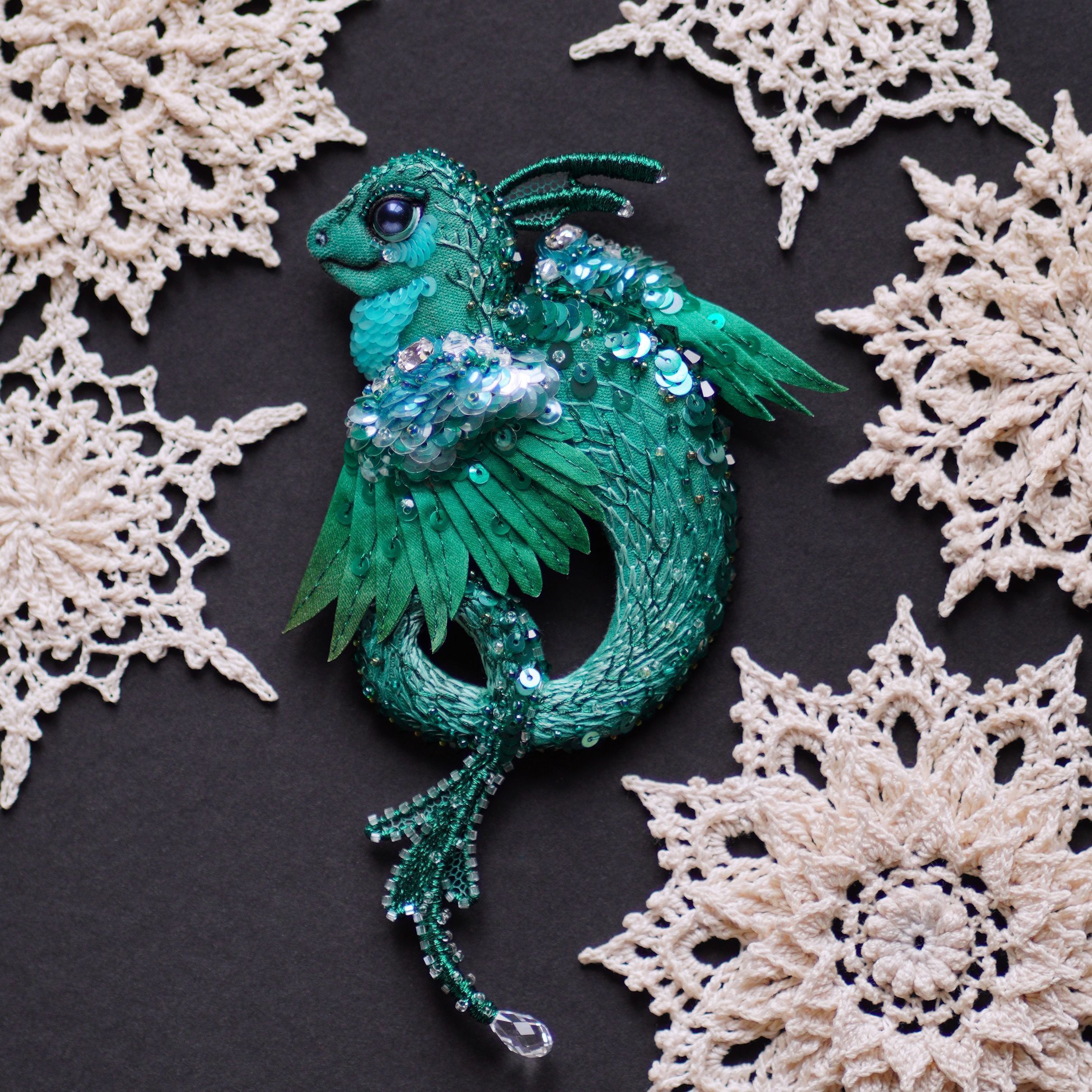 Брошь "Дракон Леголас из заснеженного леса"