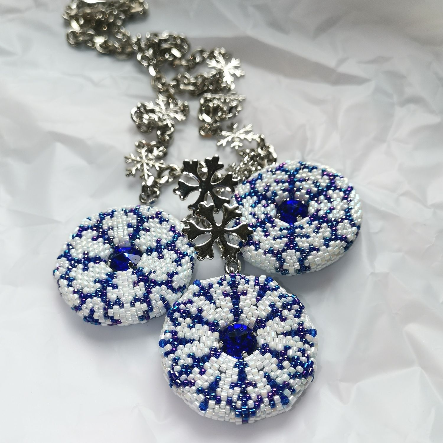 Серьги и подвеска на цепи "Праздничные снежинки"