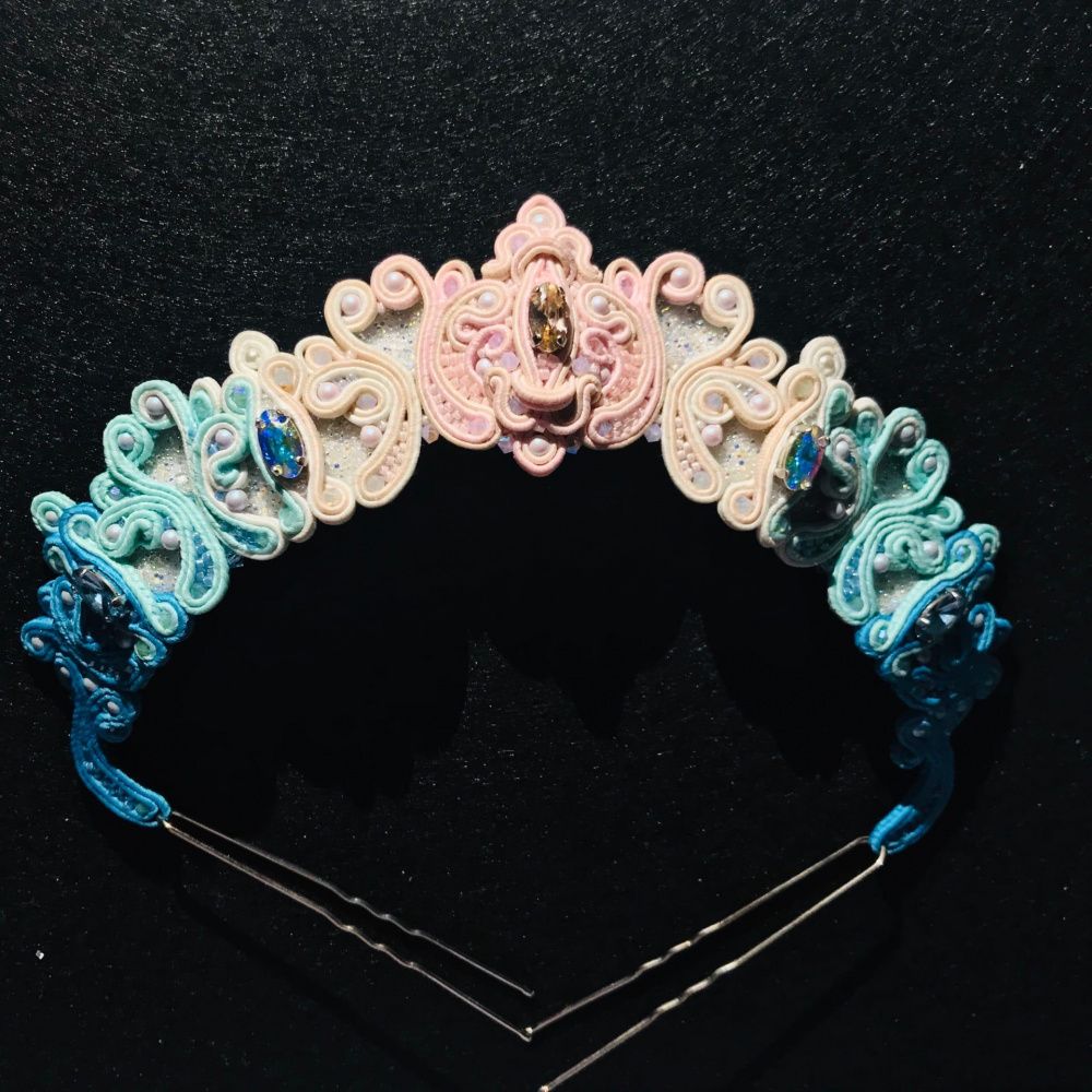 Моя работа представляет собой сутажную мини диадему с двумя сторонами.