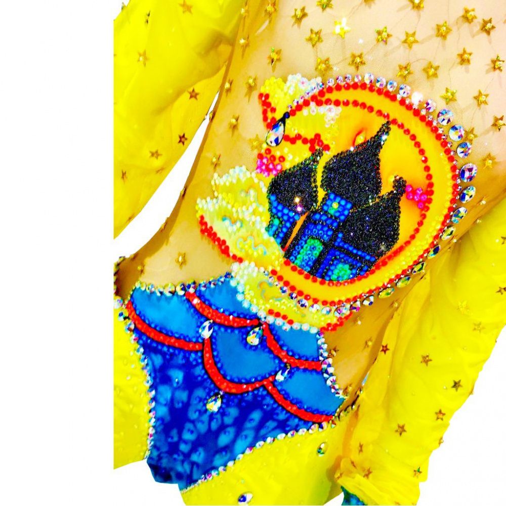 Я впервые участвую в конкурсе Сваровски, и хочется верить, что двигаюсь в верном направлении. Для меня тема Сияние всегда связана с востоком. Ведь там все блестит, горит, женщины носят большое количество дорогих украшений, купола светятся Золотом… И отовсюду веет богатством, Вот и для работы восток навеял свое… Ведь в этом году так хочется яркости! И вот она, яркость! Вот она сказочность, магия и загадка! Купальник выполнен в ярких тонах, по купальнику рассыпаны пайетки в виде звезд. Сам стиль купальника также восточный, легкие широкие рукава, изящные манжеты. Юбка в стиле Алладина…. Ну и конечно конкурсные стразы помогли с воплощением яркости и дополнили образ купальника. Новые грани сияния для меня заключаются именно в этой яркости. Они придают нотки оптимизма в этот сложный для всех нас год. Будьте яркими! И мир вам улыбнется обязательно!