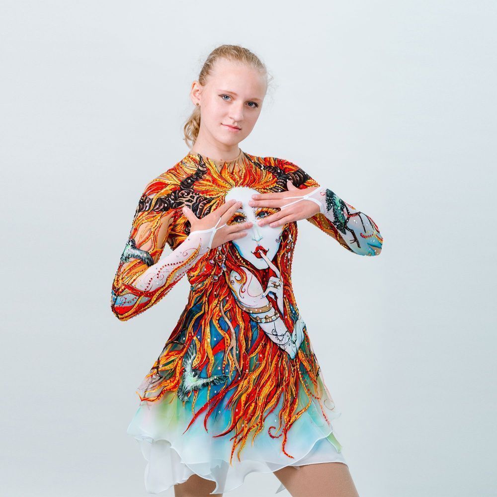 Этот костюм был вдохновлён лесом и лесными существам. Здесь вы можете увидеть лесную Дриаду, защитницу и охранницу леса. Её характерные черты это рога, напоминающие толстые ветви старого, сухого дерева. Рядом с Дриадами всегда очень много замечательных, маленьких птичек. Они являются её главными помощниками. Помощники Дриад отличаются от обычных птиц. Главная их особенность оперение, на фоне серых и блёклых крыльев выделяются ярко зелёные перышки, что бы никто не спутал их с обычными птицами. Обязанности Дриад очень важны для леса и его жителей. Их жизнь многогранна. В разное время года у хранительницы леса меняются обязанности. Зимой она укутывает всех зверей, растения и деревья тёплым белоснежным одеялом. Если вы когда ни будь были в зимнем ночном лесу, то наверняка слышали тихий и успокаивающий звук ветра . Это Дриада поёт колыбель зверям. Затем наступает Весна -замечательное время рождения и цветения. Распускаются цветы, набухают почки и на свет появляются прекрасные детёныши. Здесь изображена Дриада поздней осень. В это время лес затихает, животные после долгого сбора запасов готовятся к спячке . В это время в лесу тихо и спокойно.