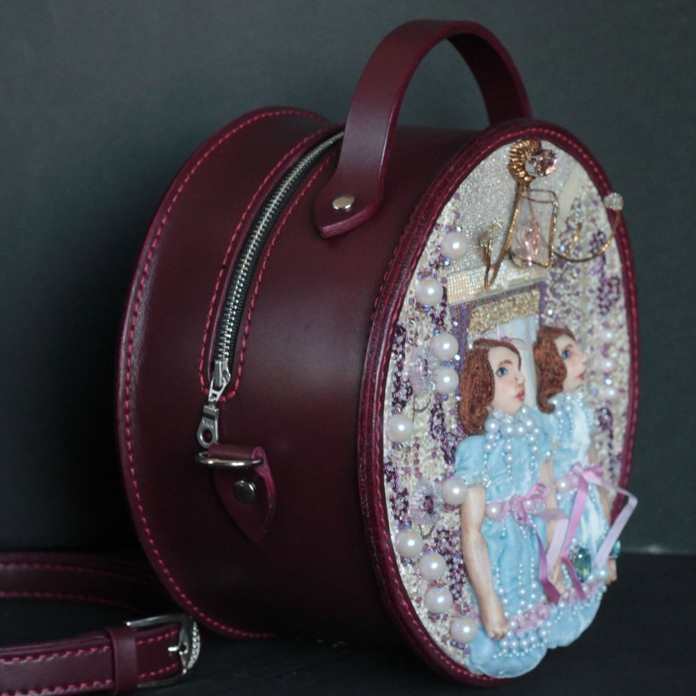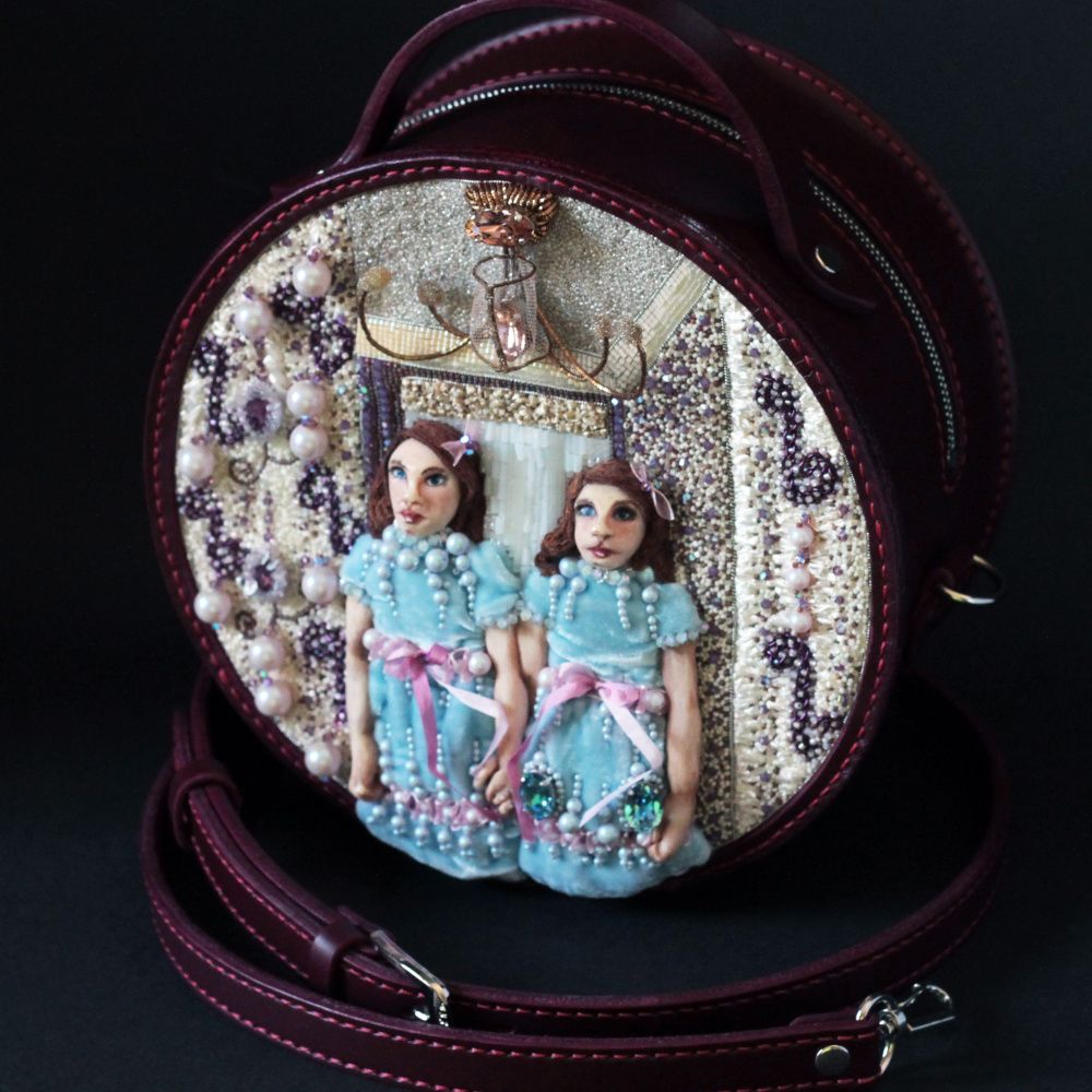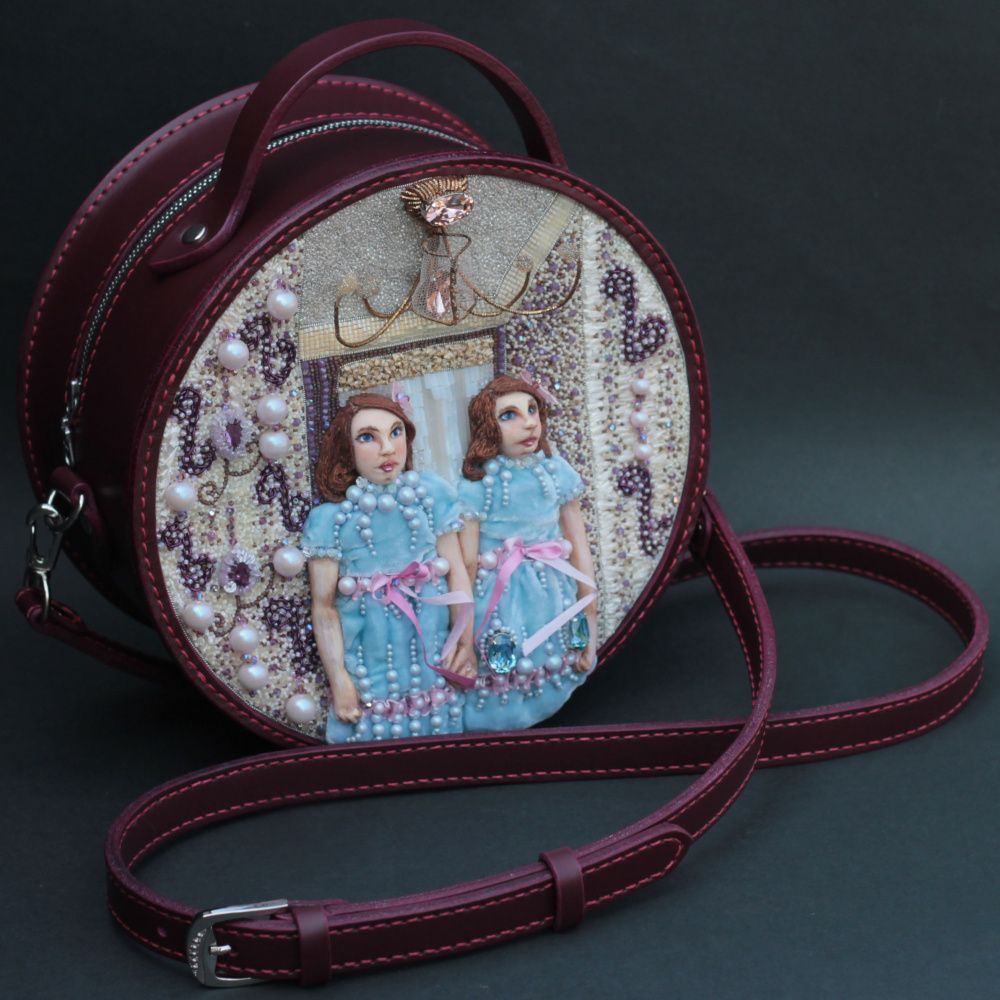 Когда я впервые увидела коллекцию кристаллов и узнала ее название в голове пронесся вихрь ассоциаций. И самой яркой из них было воплощение жутковатых девочек из фильма по роману Стивена Кинга «Сияние». Поэтому представляю свою сумочку «Come play with us Johnny» в качестве новых граней сияния.