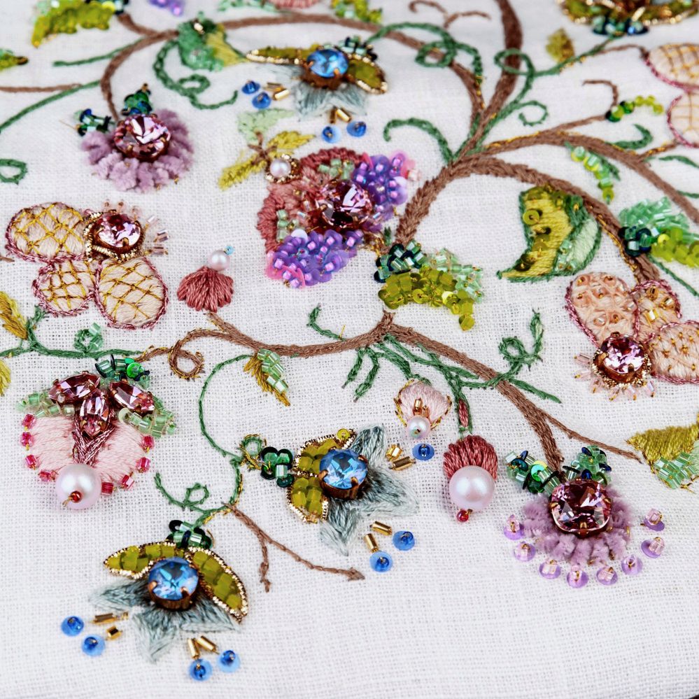 Моя сумочка была придумана специально для конкурса « Новые грани сияния» и создана показать красоту кристаллов из последней коллекции. Основной мыслью было раскрыть сияние кристаллов на фоне нитей для вышивки и натуральных тканей. В мире, который стремиться к природе в моду прочно вошли такие натуральные ткани , как лен, из которого и сшита моя сумочка. А традиционная ручная вышивка делает вещь самобытной. Кристаллы же в свою очередь добавляют нарядности, яркости, игры красок .
