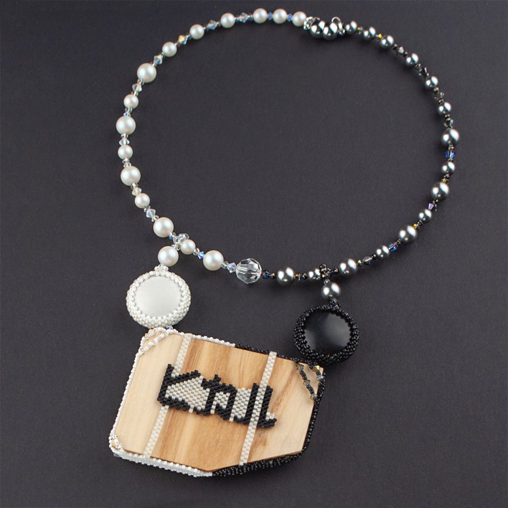 Моё колье - посвящение игре и в нём использованы реальные камни для го, чёрный и белый. Cамо колье представляет собой часть гобана с моментом одной из известных игр.