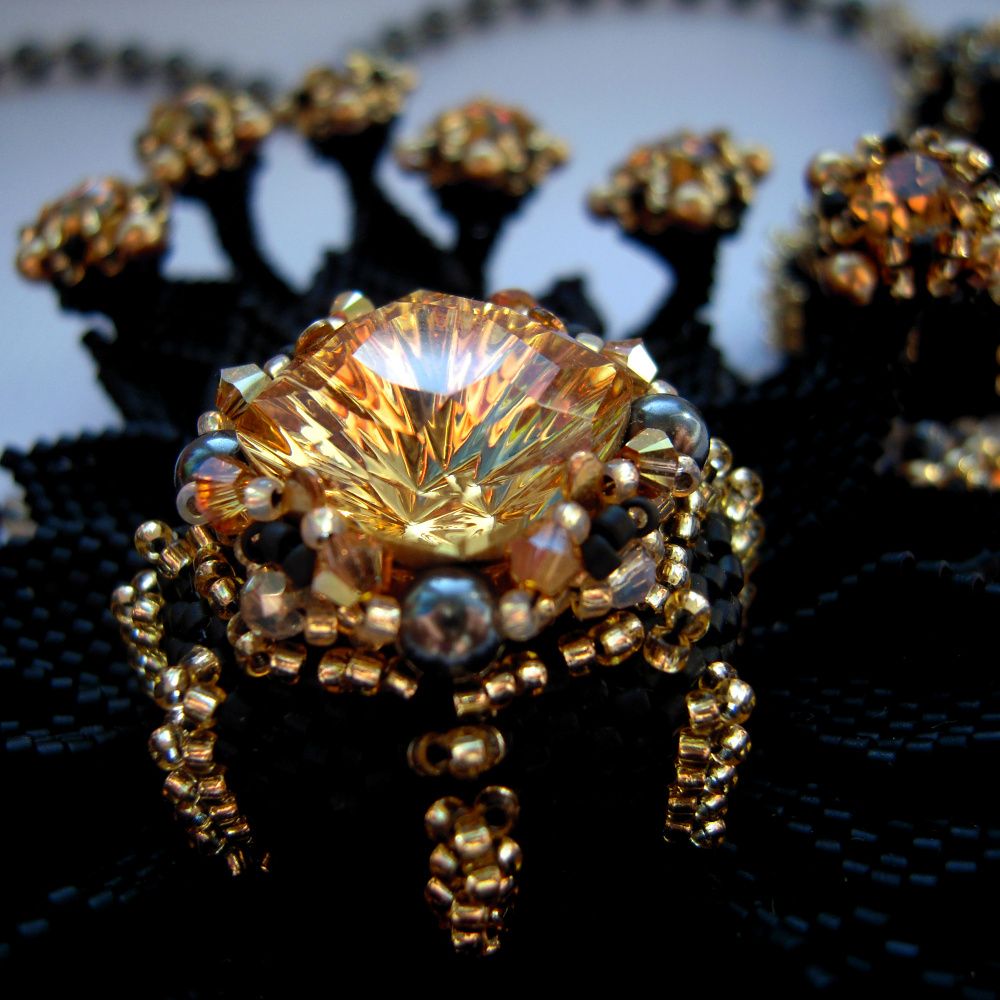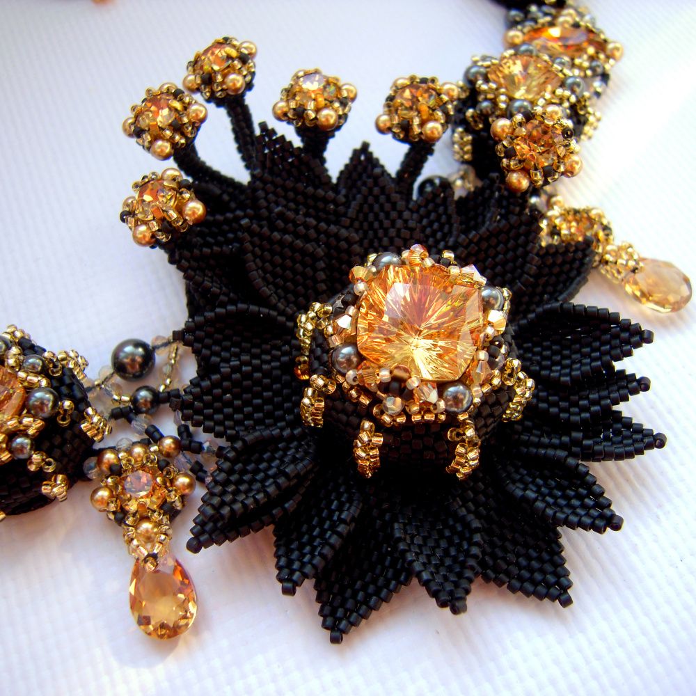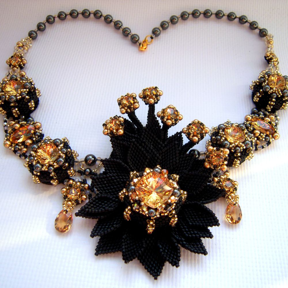 Черная, плодородная, богатая, жирная, кормящая, мать сыра земля. Она любит, растит и принимает нас. Она согревает нас своим теплом и освещает наш путь своим теплым светом. Распускается причудливыми цветами и волнует нашу фантазию. Она неиссякаемый источник вдохновения. Это колье посвящено земле, самой «обычной» земле, черному золоту, у нас под ногами. Мы привыкли ее топтать мало кто задумывается о ее реальной ценности. Мы пришли из нее и в нее вернемся. Как бы не была богата фантазия, любого мастера, земля всех переплюнула, она создает шедевры и включает новые грани сияния каждую долю секунды. Я очень хочу, что бы она как можно дольше наполняла наши сердца своим светом, а мы будем черпать от нее вдохновение.