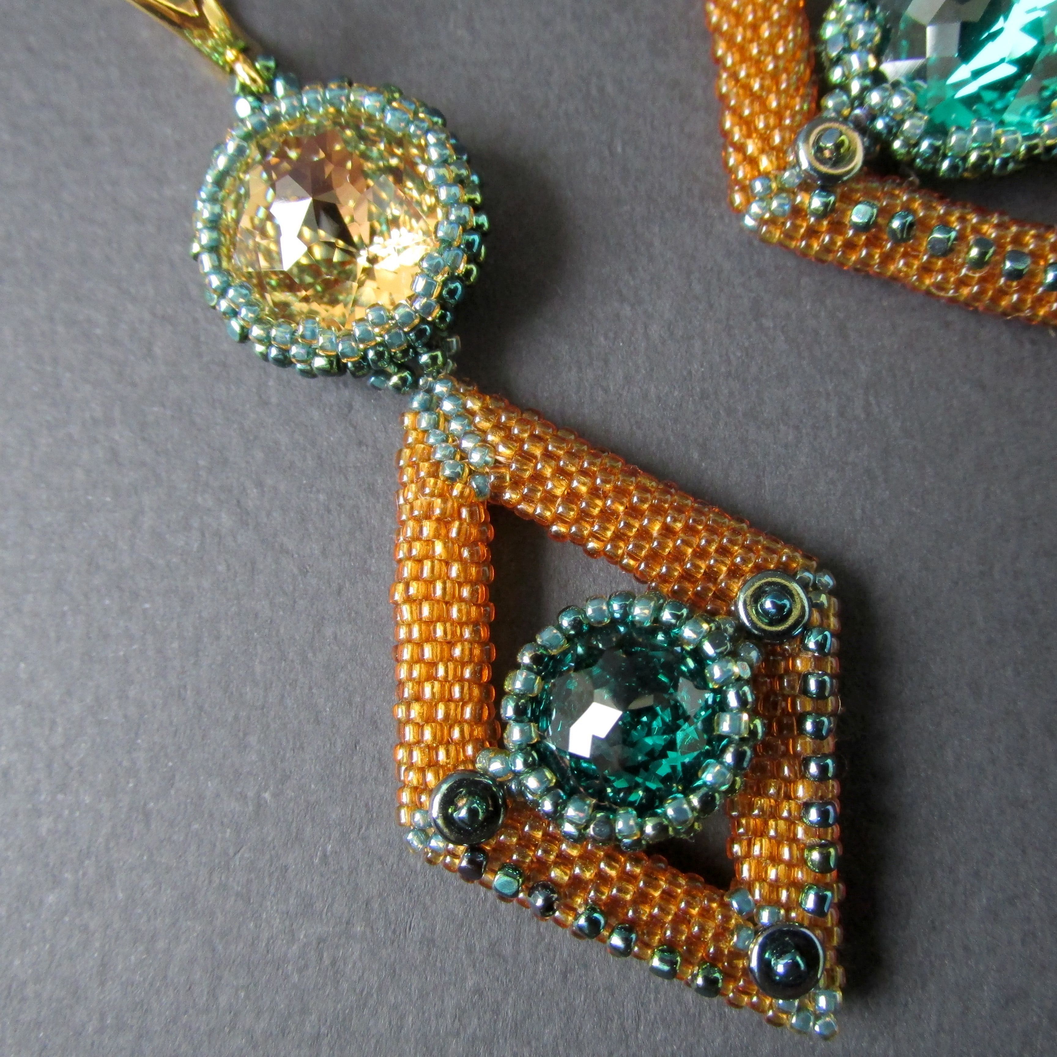 Одинаковая форма основных элементов разного размера и дополнительный кристалл, создают лёгкую ассиметричность, популярную и в этом сезоне.