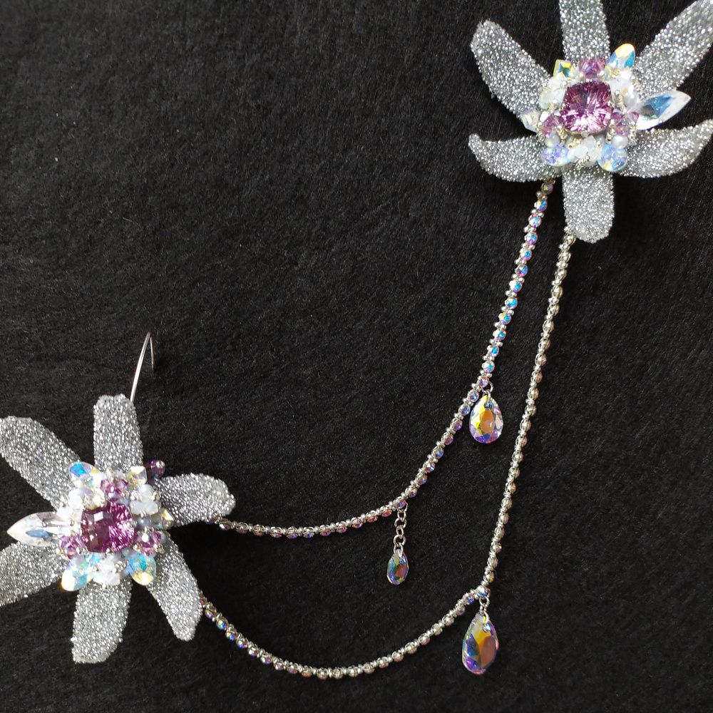 Вот она, целая Вселенная, со звездами, далекими и близкими. Серьги-звезды будто повисли в воздухе за счет швенз-крючков. Как Млечный путь – небосвод, так соединяющие две серьги цепи из Crystal Mesh обнимают шею. И вдруг – летит звезда. Смотри, какой яркий след тянется за ней. Ты знаешь, что делать, – скорее загадай желание! Шейное украшение легко трансформируется в струящуюся подвеску одной «звезды». Цвет Iris - символизирует космос, нечто мистическое.