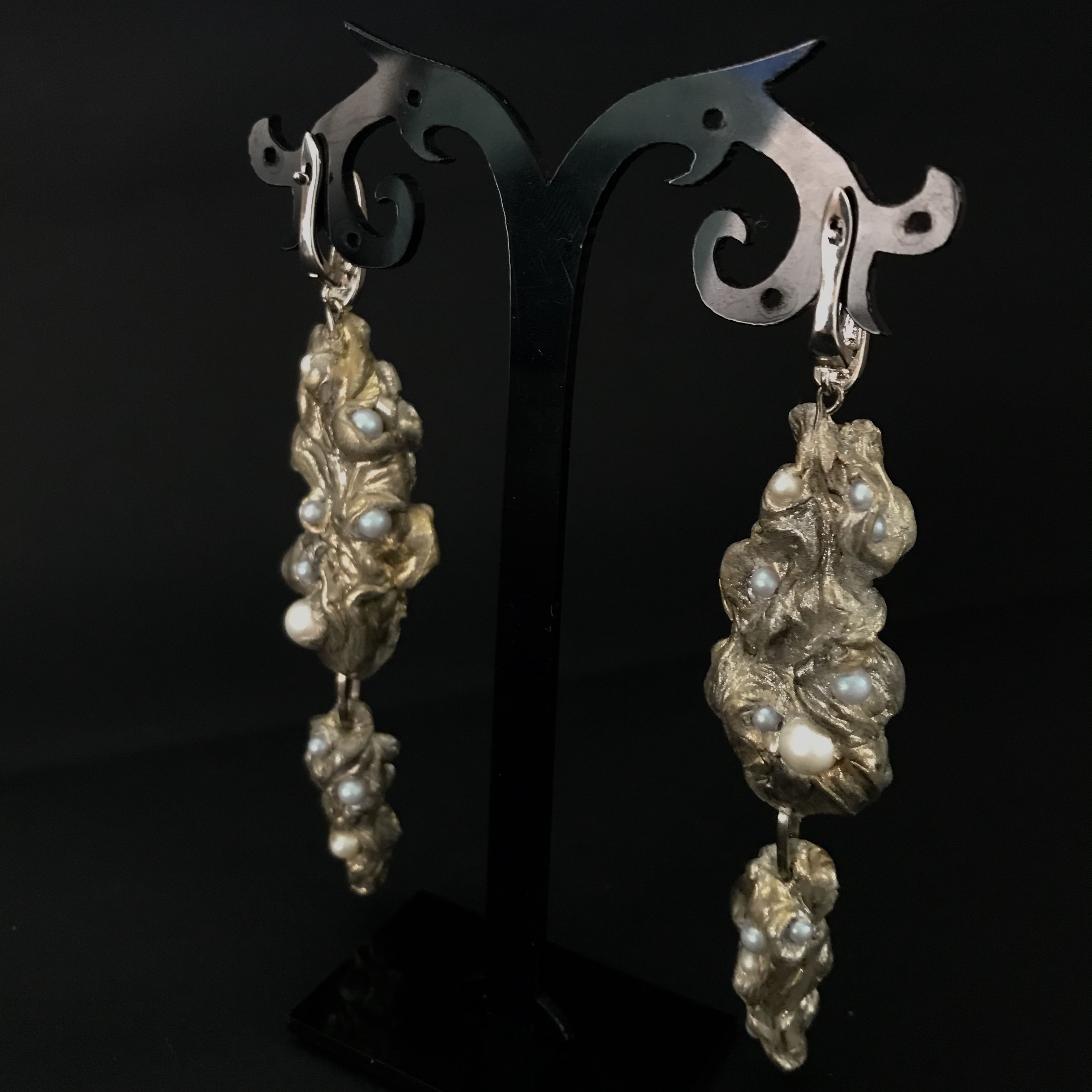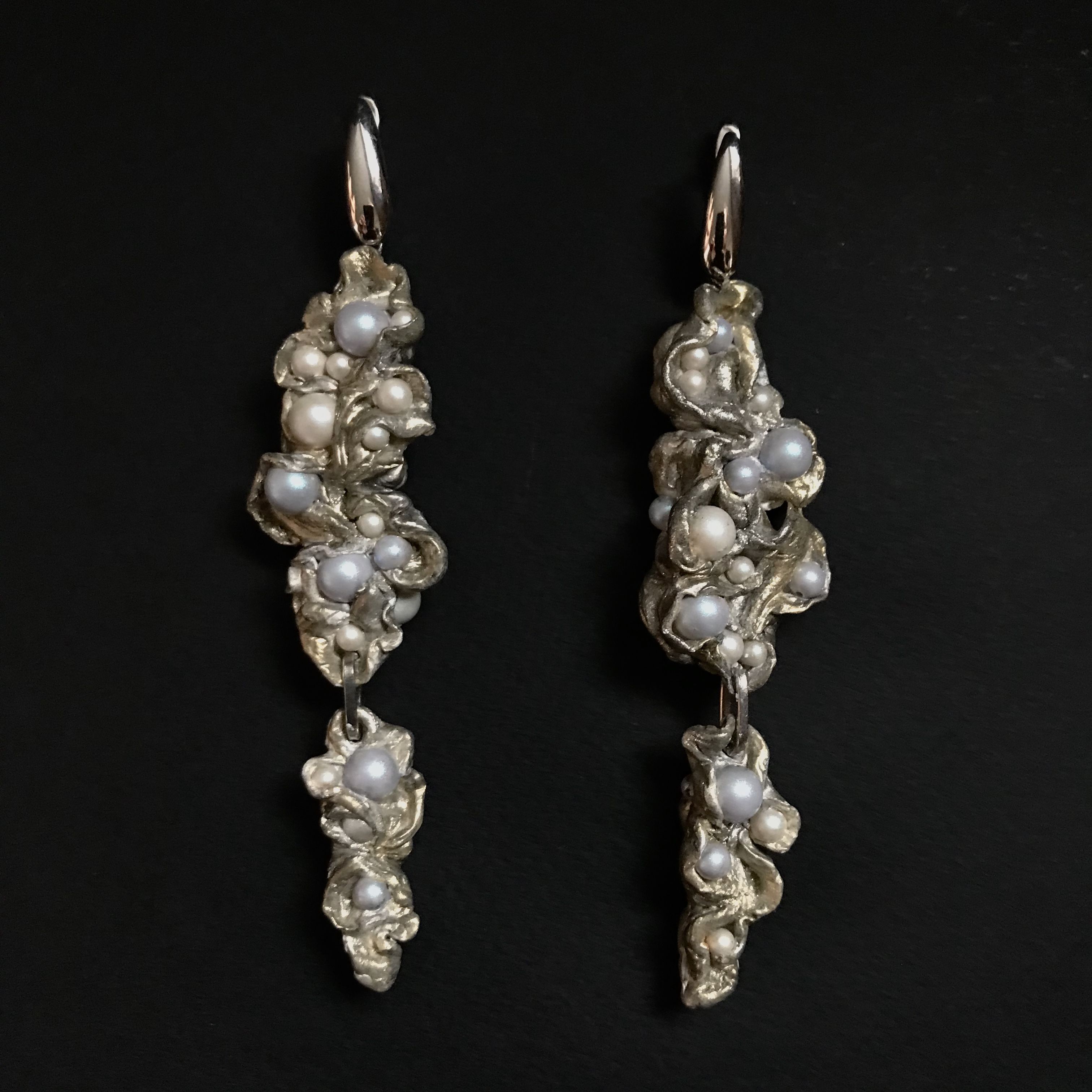 Эти строки из гимна Гомера к Афродите вдохновили меня создать серьги в виде морской пены с искрящимися капельками в виде жемчужин.