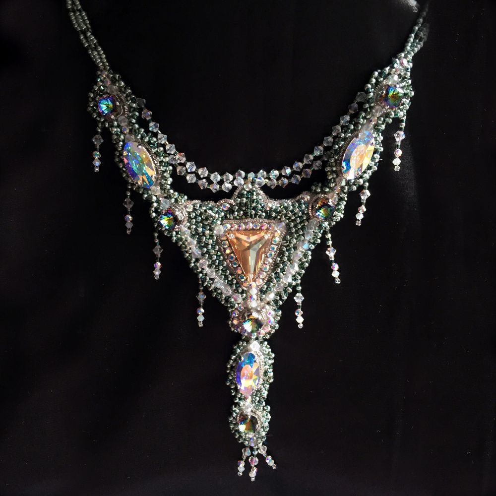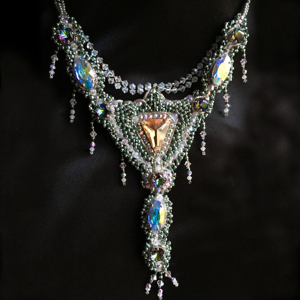 Компания Swarovski подарила миру прекрасные звёзды, из которых рождаются созвездия, галактики, вселенные. Грани кристаллов преломляют свет, отражая мир бытия с разных сторон: иногда созидательной, а иногда и разрушительной. Колье "Триангулум - грани реальности" - это сияющая в звёздах Swarovski вселенная северных, суровых, но спокойных мест. Великая сила застыла в камне в ожидании достойного. Она здесь, она ждёт.