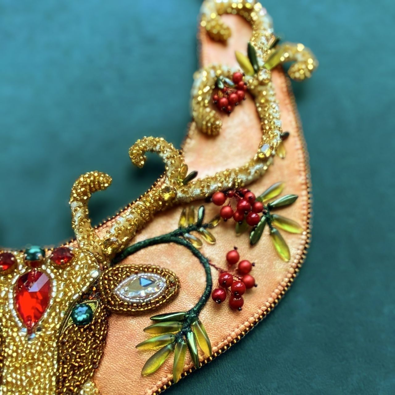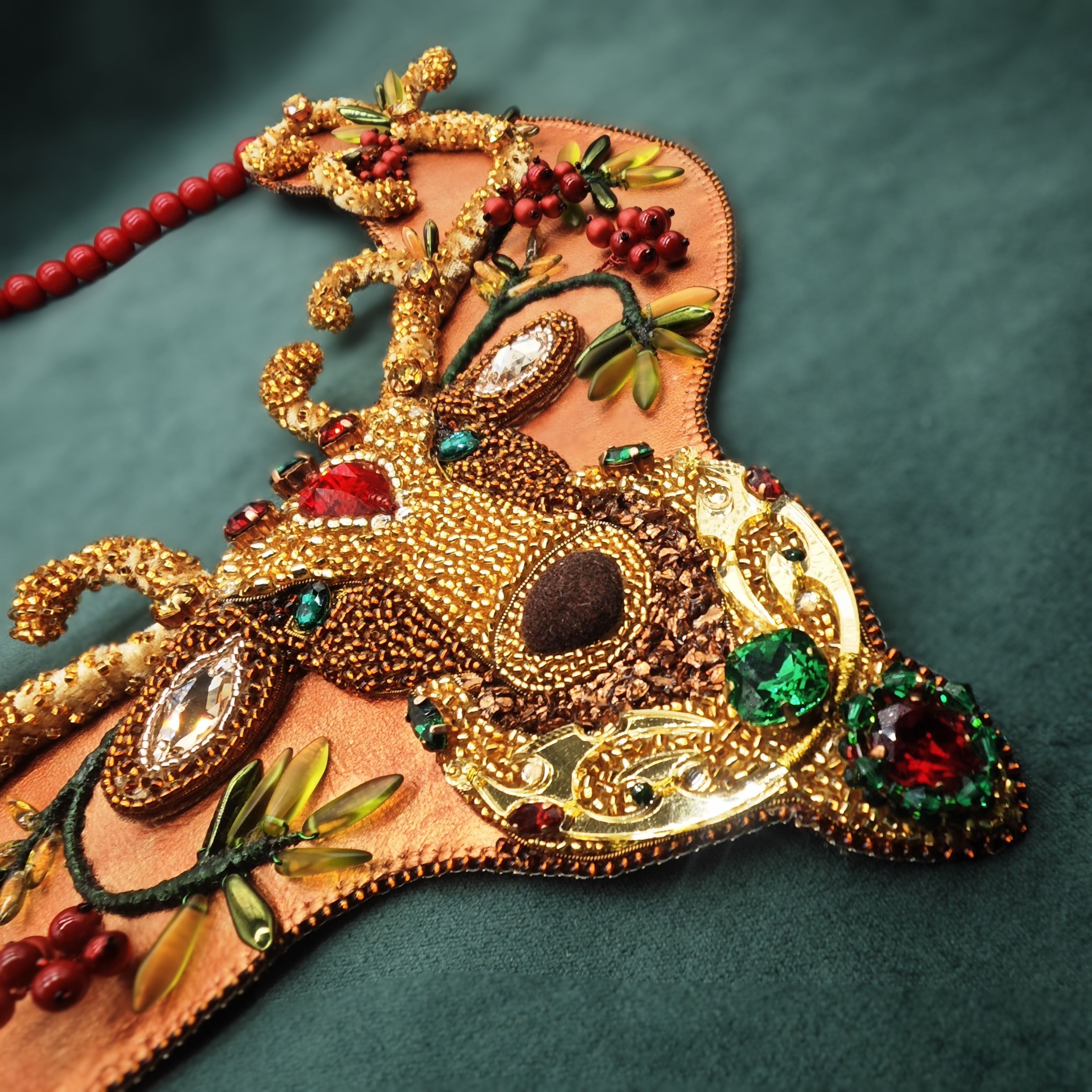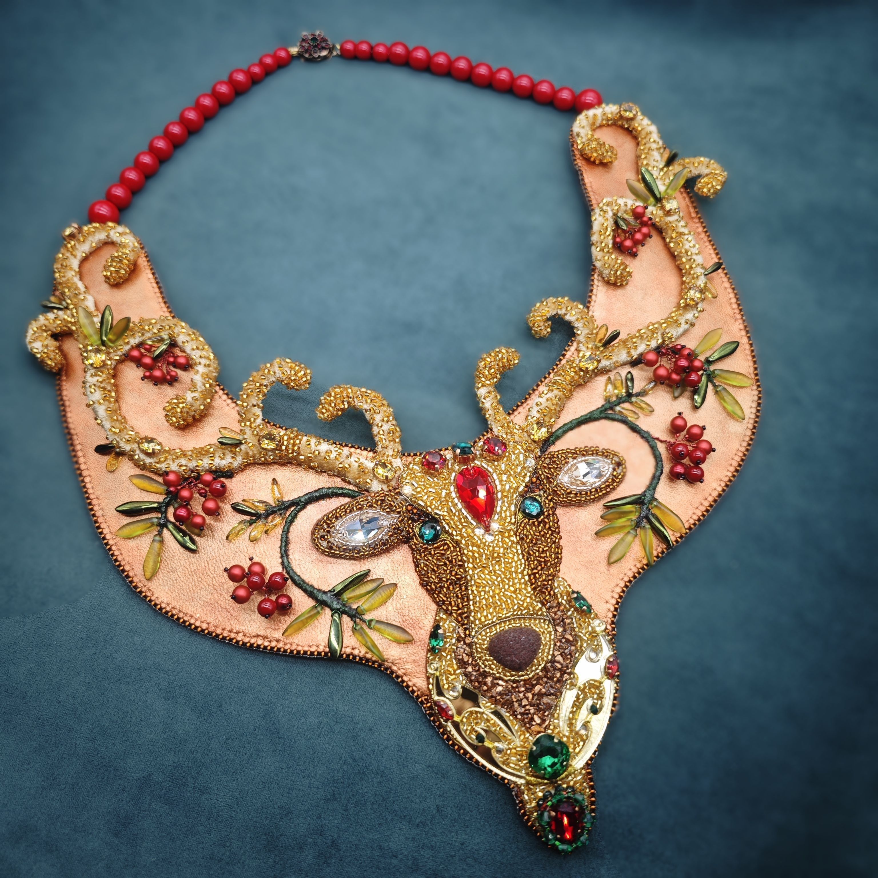 Колье "Хранитель волшебного леса" - это украшение, которое сочетает в себе гармонию природы и волшебство. Основная идея этого изделия заключается в сохранении уникальности и красоты природы, отраженной в сказочном образе оленя.