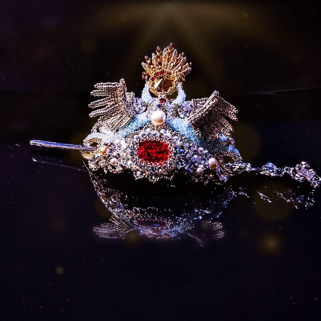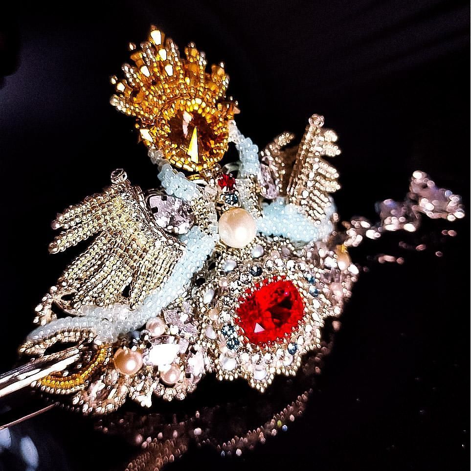 Все элементы выполнены в технике плетение, основой заколки послужила филигрань.