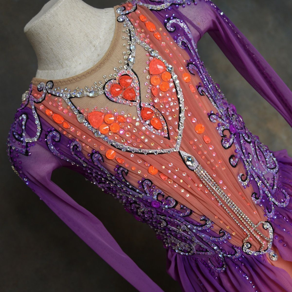 Яркие коралловые и фиолетовые оттенки так хорошо соединились с видоизмененными орнаментами художника Гагарина