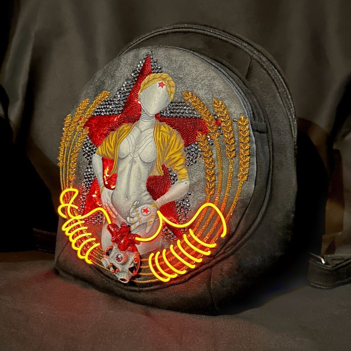 Рюкзак создан по мотивам игры Atomic Heart, в основу сюжета которой положено, что в Советском Союзе в 1936 году произошел огромный технологический прорыв в области энергетики и робототехники, освободив большую часть населения СССР от ручного труда. Создается беспроводной, сетевой искусственный интеллект под названием «Коллектив 1.0», который объединяет роботов для увеличения их эффективности.