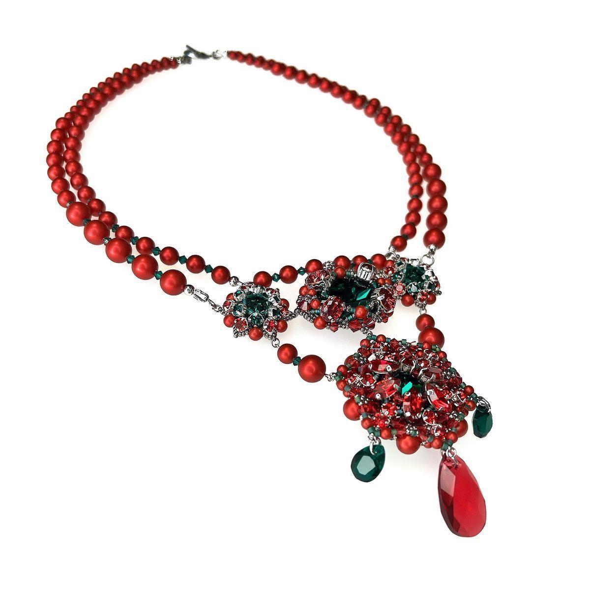 Конкурсное колье названо в честь рождественского цветка, который сопровождает меня на протяжении жизни. Все потому, что родилась в католическое рождество и с детства интересовалась традициями этого праздника. Так я узнала о пуансеттии, которая спустя время стала для меня талисманом и символом приближающихся праздников. Жемчуг цвета Rouge и элементы Scarlet и Emerald идеально передают оттенки рождественской звезды. Именно они вдохновили меня на создание традиционного цветка, позволяющего верить в лучшее будущее.