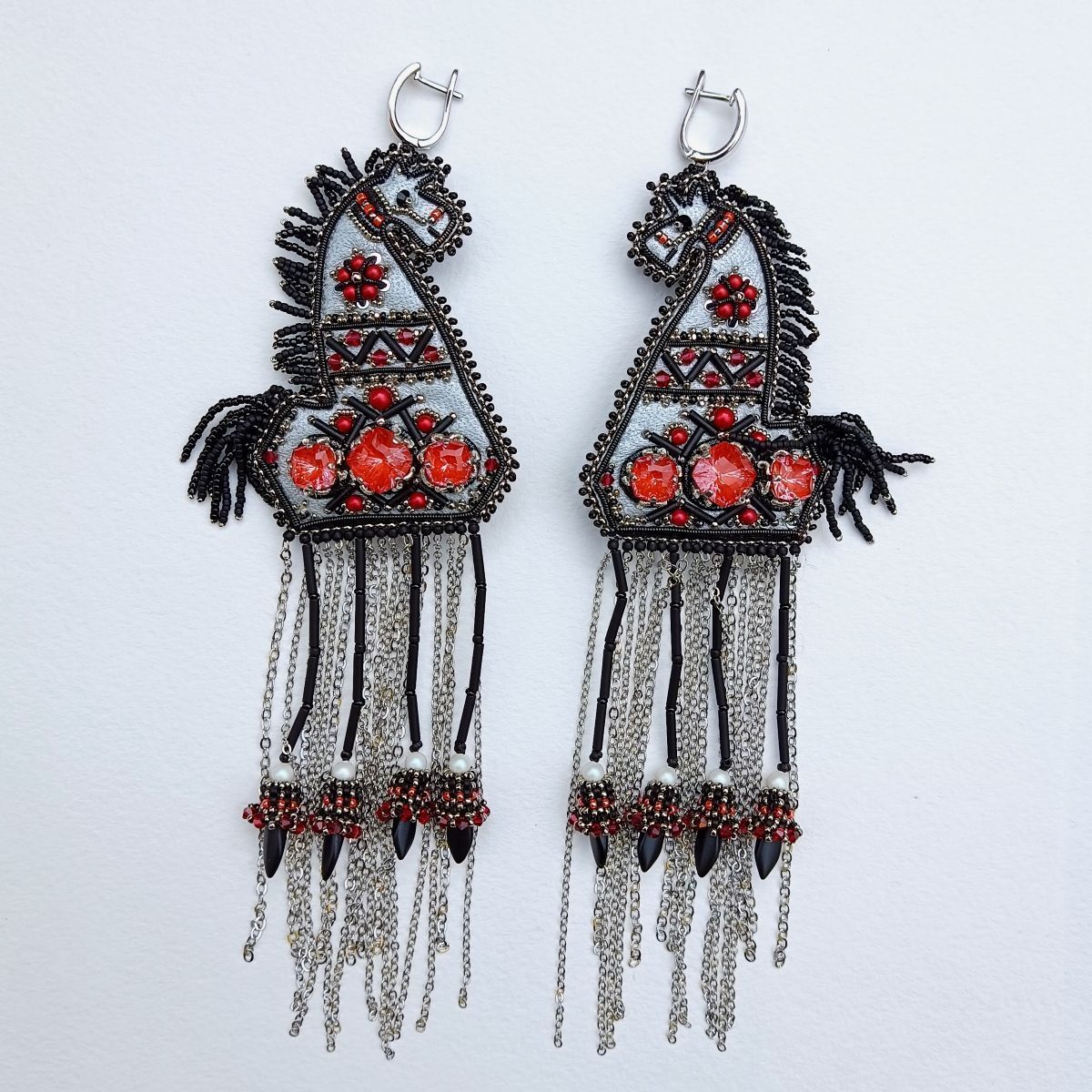 Так и родились эти замечательные серьги «Мезенские лошадки».