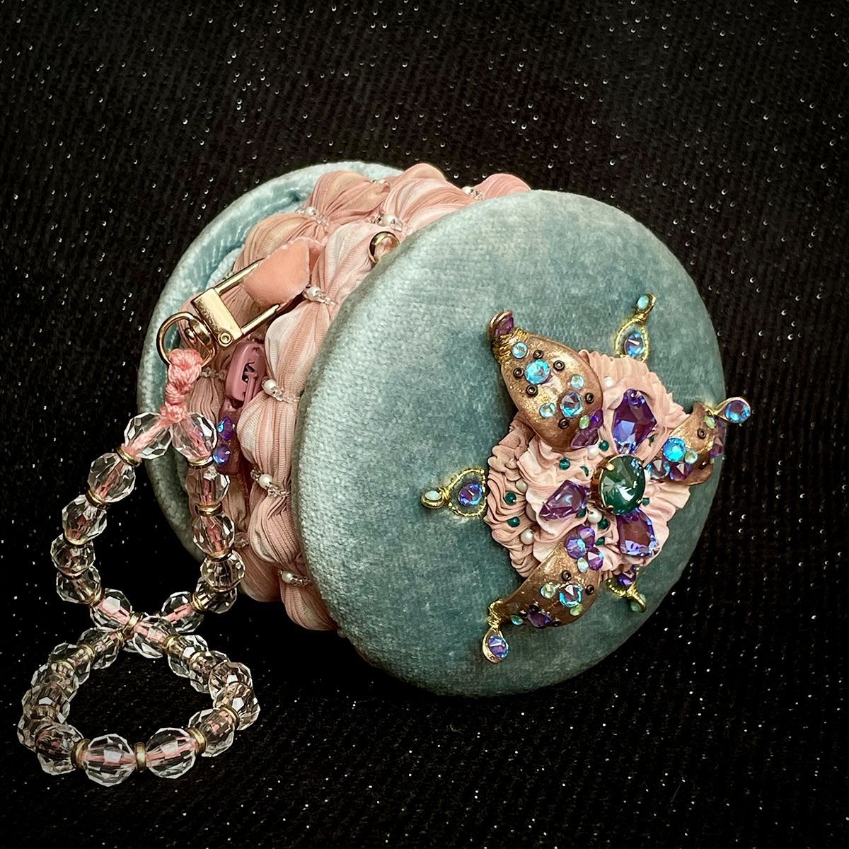 Миниатюрная сумочка переносит фантазию далеко в прошлое, во времена сезонов балов, в XIX век. Кружение юбок, блеск люстр, бархат занавесок, постукивание каблучков о паркет и вкусные угощения!