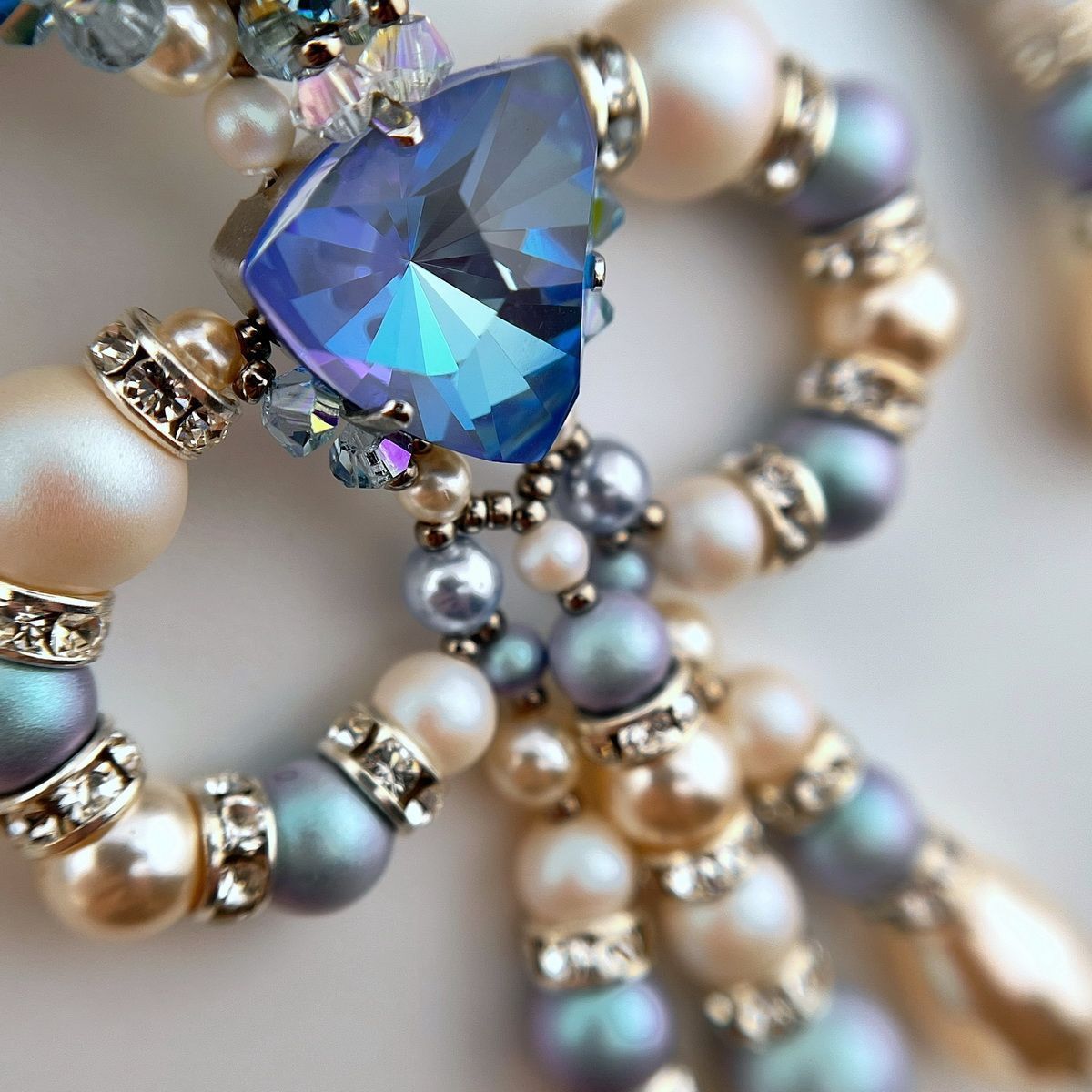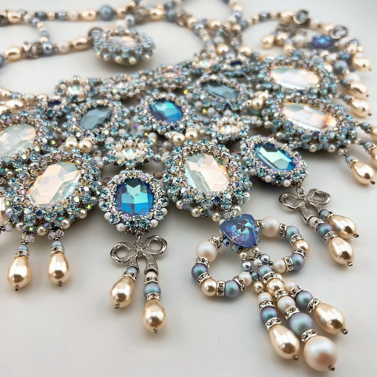 Вдохновленное образом королевы, чья красота и достоинство пережили века, колье «Анна Австрийская» соединяет в себе блеск власти и нежность сердца. Переливы кристаллов напоминают холодное сияние дворцовых залов, где отражается свет свечей, а вязь жемчуга словно соткана из тайн и вздохов великосветских балов.